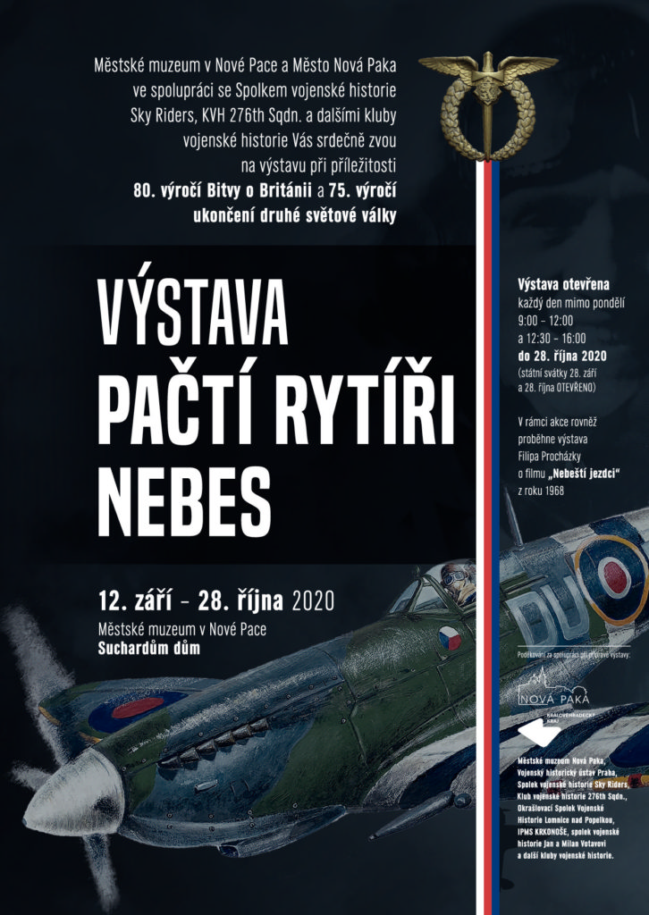 Zveme vás na výstavu při příležitosti 80. výročí Bitvy o Británii a 75. výročí ukončení druhé světové války Pačtí rytíři nebes.