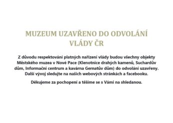 Od 18. prosince jsou expozice a výstavy Městského muzea v Nové Pace uzavřeny, dle nařízení vlády…..Zároveň je uzavřeno i informační centrum, které sídlí v...